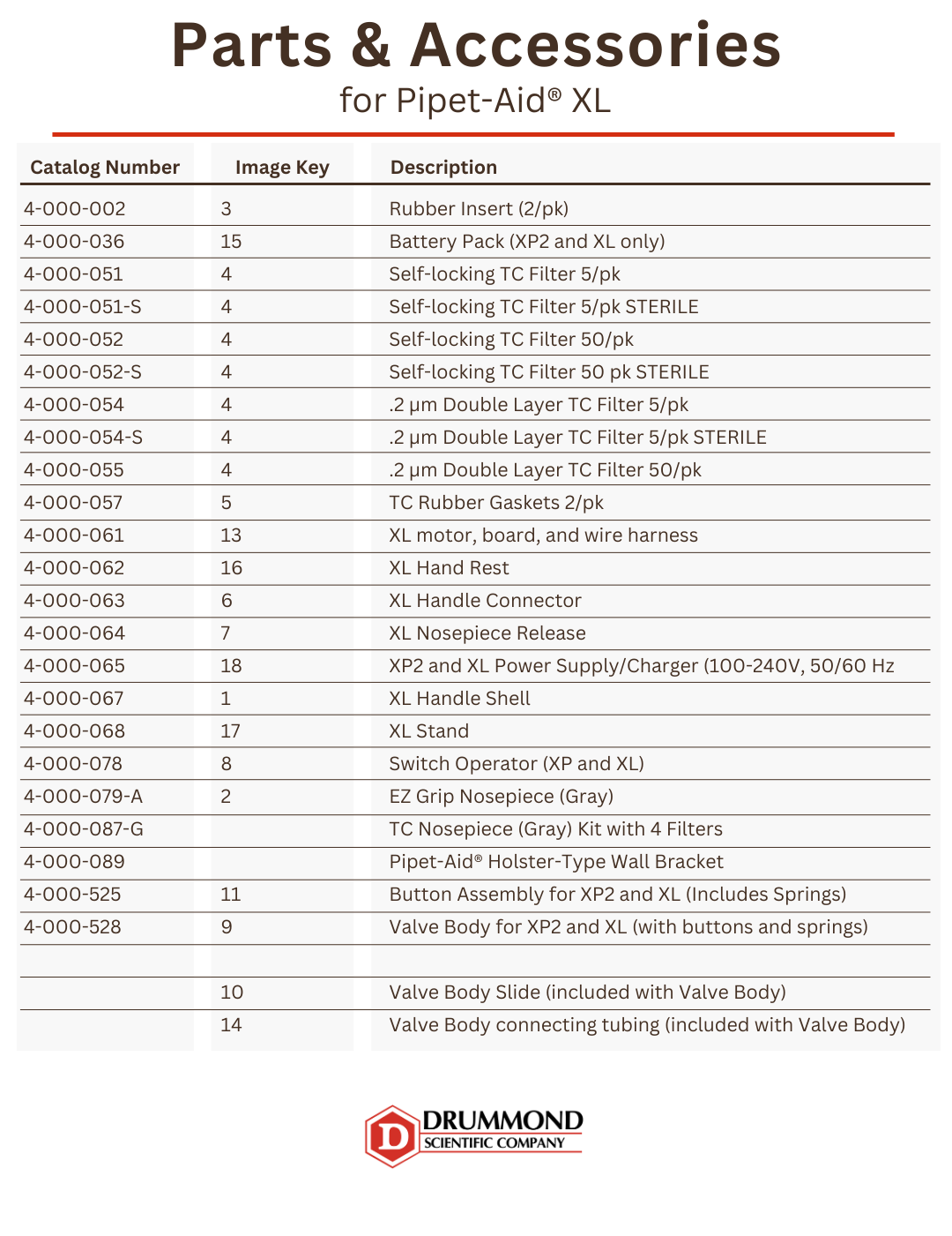 The Pipet-Aid® XL also features a new, quieter, more powerful pump and comes complete with a power supply/charger, four extra filters, a holster-type wall bracket, and a removable stand.